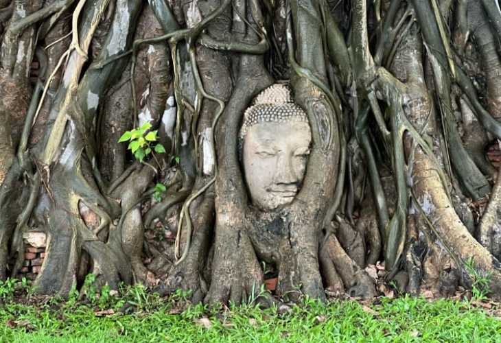 ワット・マハタートを訪れ、木の根に埋もれた世界的に有名な仏頭をご覧ください。タイを象徴する象徴の一つです。