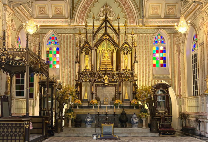 魅力的なケーブルカーで川を渡り、ゴシック・リバイバル様式で建てられたタイの珍しいヨーロッパ様式の寺院、ワット・ニウェート・タンマプラワットを訪れましょう。ステンドグラスの窓、尖頭アーチ、そして東洋と西洋の創造性が融合した物語など、訪れる者すべてを驚かせます。静かで印象的なこの場所は、写真撮影やラーマ5世の構想に関する興味深い物語を楽しむのに最適です。